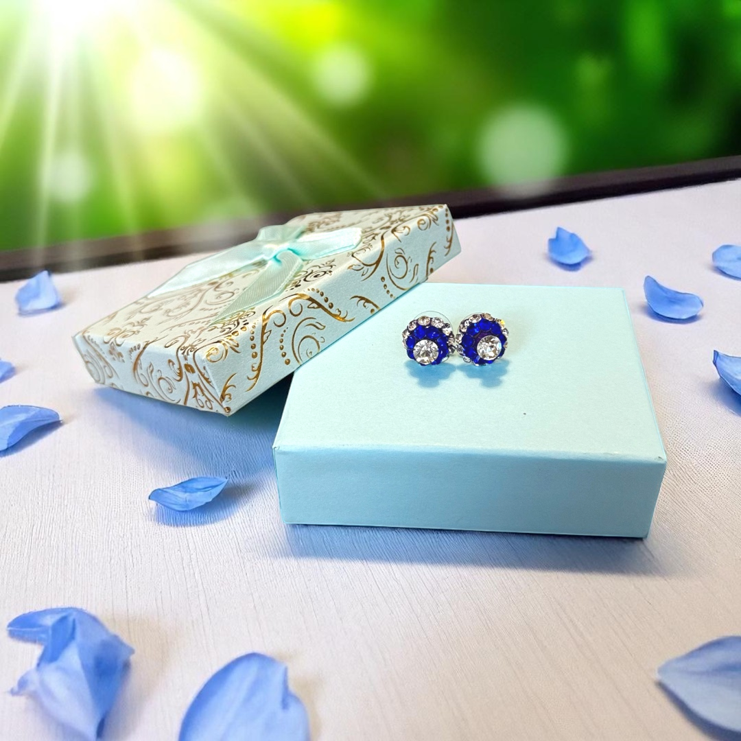 Sparkling pair of diamond stud earrings, designed with colourful crystals.
